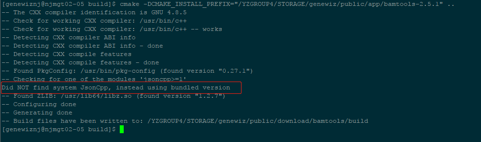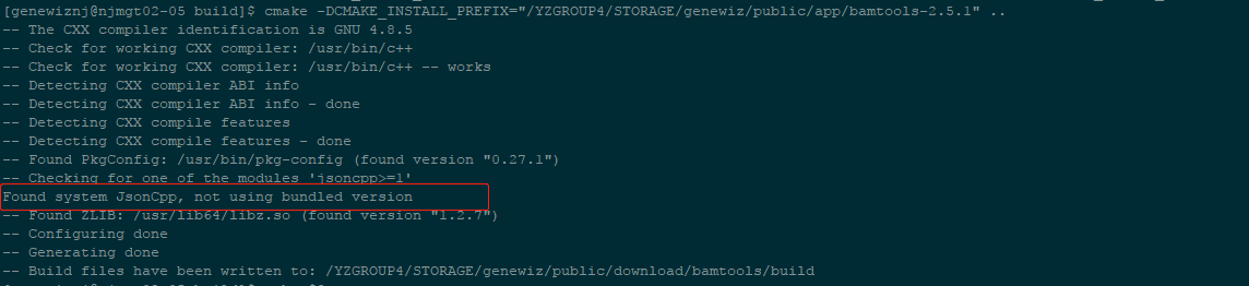 cmake -DCMAKE_INSTALL_PREFIX="/YZGROUP4/STORAGE/genewiz/public/app/bamtools-2.5.1" ..